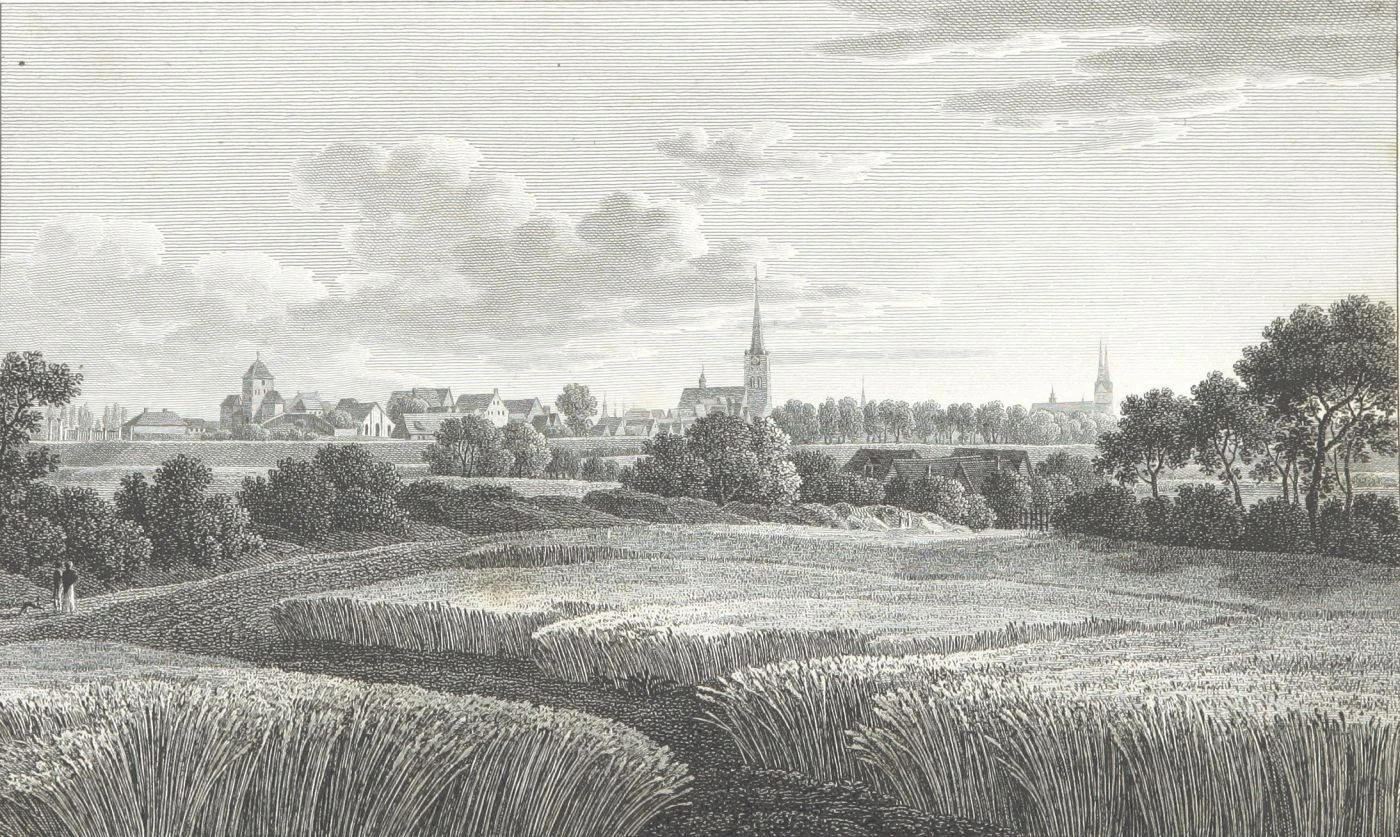 Das ehemalige Gebiet der Stadt lag zerstreut. Außer dem unmittelbar um die Stadt gelegenen Bezirk gehört dazu noch der Flecken Schlukup an der Trave, und das befestigte Städtchen Travemünde nebst Hafen. Gemeinschaftlich mit Hamburg besitzt Lübeck die Vierlande und das Städtchen Bergedorf, einen sehr fruchtbaren Landstrich an der Elbe; außerdem gehören noch der Stadt die Aemter Rihen und Behlendorf im Lauenburgischen, das Dorf Malkendorf im Fürstenthume Lübeck und einige zerstreute Besitzungen, im Ganzen 4 Quadratmeilen, mit mehr als 10,000 Einwohnern. Bei den großen Ausgleichungen im J. 1802 ward Lübeck mehr arrondirt und in unmittelbaren Zusammenhang mit seinem Hafen gesetzt. Außer der kleinen Halbinsel Prideval, welche Travemünde gegenüber liegt, die Mündung der Trave beherrscht, und von Mecklenburg an Lübeck abgetreten wurde, erhielt letztere noch den Besitz der Domkirche, und aller dem Hochstifte Lübeck in der Stadt zuständigen Gebäude und Vorrechte, trat aber dagegen einige Dörfer an Mecklenburg ab. Dieser neue Erwerb betrug nicht viel über eine Quadratmeile, ward aber durch seine Lage der Stadt sehr wichtig. Als 1806 die ehemalige Reichsverfassung aufgehoben wurde, bestand Lübeck, jedoch ohne Verbindung mit dem übrigen Deutschland, als freie Hansestadt.