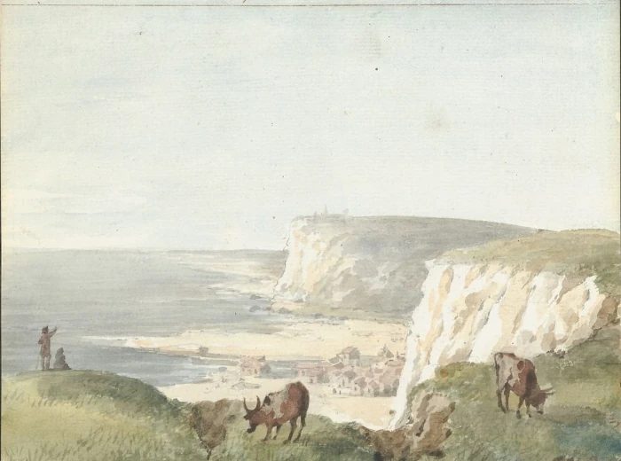 Normandie, ehemalige Provinz in Frankreich, nebst dem Titel eines Herzogthums, welche ein Stück von dem alten Neustria ist, und gegen Westen an das Meer von Bretagne, gegen Norden an die Picardie und den Canal, gegen Osten an die Isle de France, und gegen Süden an Perche, Maine und Bretagne gränzt. Ihre Ausdehnung beträgt 588 Quadratmeilen und die Bevölkerung 2 Millionen Menschen. Sie erhielt diesen Namen von den Normännern, die sich im 10ten Jahrhundert hier festsetzten. Sie ist eine der fruchtbarsten Landschaften, und bringt Getreide, Hanf und Flachs im Ueberfluß hervor. Auch der viele Tang, oder das Seegras längst der Küste ist von Wichtigkeit, theils zum Düngen der Felder, theils zum Brennen der Sode. Es wächst darinnen auch hier und da Wein; doch ist das gewöhnliche Getränke der Einwohner Aepfel- und Birn-Wein. (Cidre und Poire.) Die Viehzucht vorzüglich das Rindvieh, zeichnet sich durch Größe und Menge aus. Man findet viele Eisen- auch Kupferminen, Mineralquellen, und viele Glashütten in diesem Lande. Der Handel besteht vornämlich in Wolle, Tuch, Leinwand, Leder, Hüten, Nähnadeln, Fischen xc. und ist von großer Wichtigkeit. Sie war für den König die einträglichste Provinz, und die Einwohner sind sehr gute Seeleute. Sie wurde in die Ober- und Niedernormandie getheilt. Auf dieser Provinz sind nun die fünf Departements der Seine-Inferieure, des Calvados, des Canals, der Orne und des Eure entstanden.