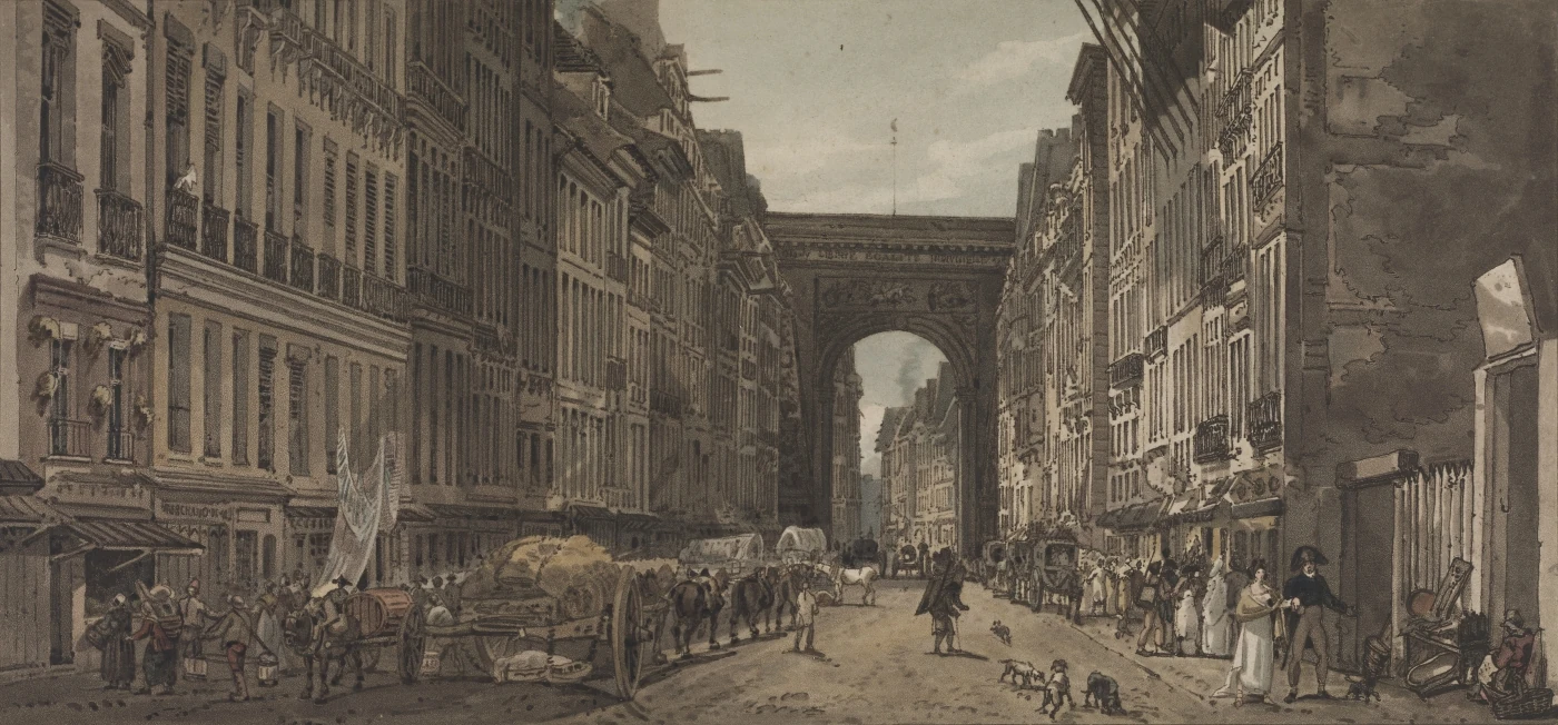 Im Ganzen genommmen ist Paris weder regelmässig noch schön gebaut; manche Strassen sind krumm und enge; die meisten Häuser sind allzuhoch, um nicht den Gassen ein düsteres Ansehen zu geben, und ein Theil der Vorstädte sieht wirklich schlecht aus. Dagegen fehlt es nicht an ausnehmend schönen Theilen der Stadt und an prächtigen Gebäuden, so daß einzelne Quartiere ein harmonisches Ganzes bilden.