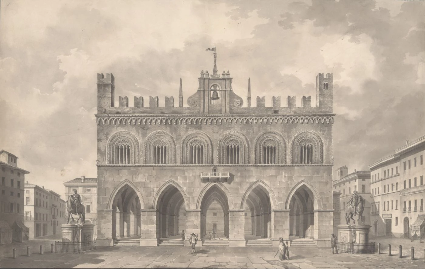 Auf einem öffentlichen Platze stehen zwo eherne Bildsäulen zu Pferde, von zween farnesischen Fürsten. Die Männer scheinen mit besser als die Pferde gerathen zu sein. Der Künstler wollte diese mit Feuer und Kraft beleben, und suchte einen Ausdruck von Wildheit, welcher minder schwer zu erreichen ist, als sanftes Leben, und, wenn er verfehlt wird, die Ansprüche des Meisters, statt sie gelten zu machen, desto sichtbarer vereitelt.