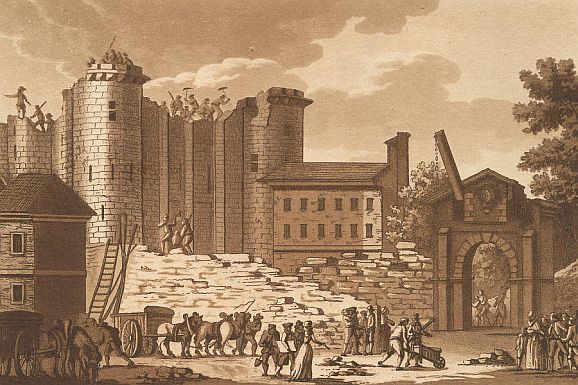 Bastille, ehemaliges Schloß, zu Paris, am Ende der Strasse St. Antoine, wurde vom J. 1369. bis 1383. erbauet, und diente ehemals zur Beschützung der Stadt. In neuern Zeiten wurden die Thürme der Bastille als Gefängnisse gebraucht. Die Wache der Bastille bestund aus 100 Invaliden. Da mancher unschuldige Mann durch Veranstaltung eines mächtigen Gegners in diesem Gefängnis viele Jahre, oft seine Lebenszeit hatte verkümmern müssen, und man die Sache im Publikum noch ärger machte, als sie war: so machten sich die Pariser bey der lezten Revolution zum ersten Geschäfte, dieses alte Kastell vom Grunde aus zu zerstören.