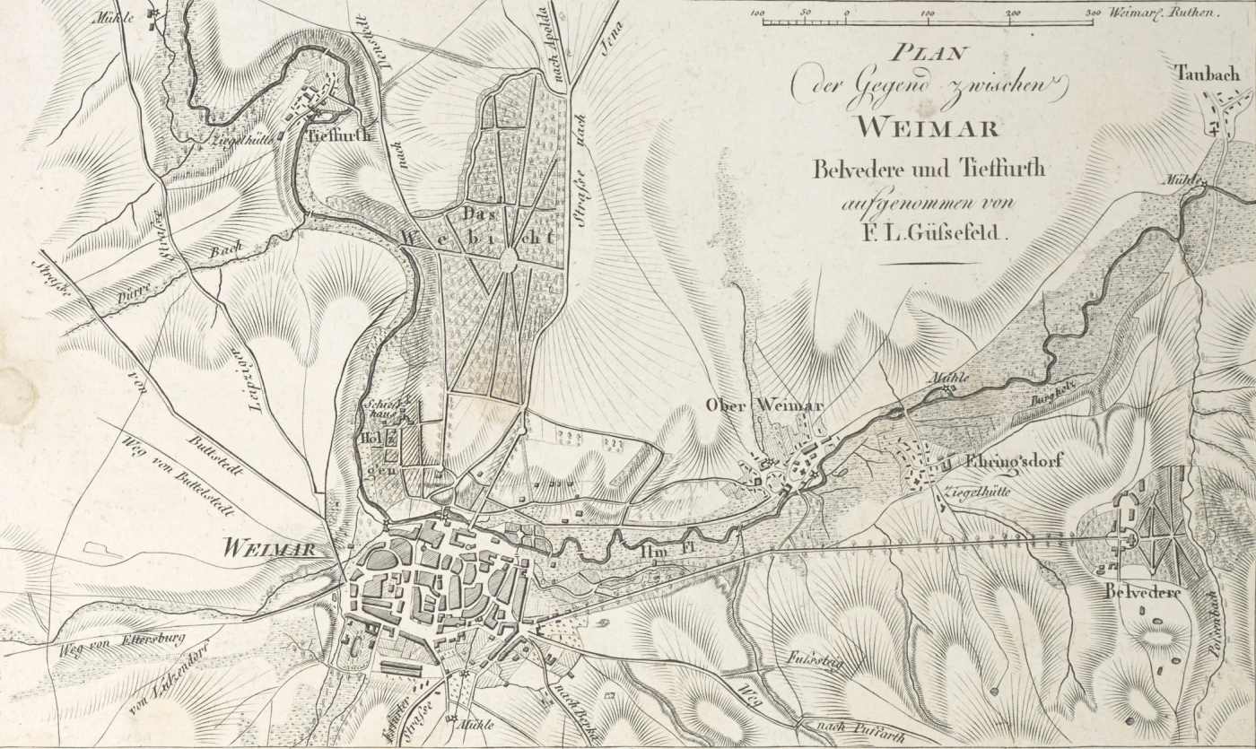 Plan der Gegend zwischen Weimar Belvedere und Tieffurth.[]
